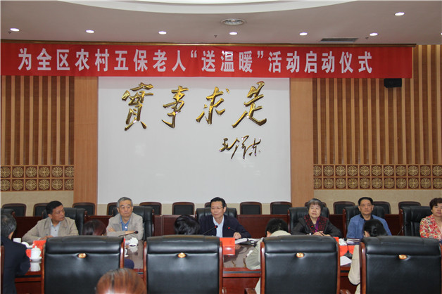 认真学习贯彻落实党的十九大会议精神以及《中华人民共和国慈善法》和国务院《关于促进慈善事业健康发展的指导意见》,按照区委、区政府《关于全面深入推进农村精准扶贫开发工作的实施意见》的要求,在冬季来临之际,对全区农村“五保老人”普遍进行一次“送温暖”活动,帮助“五保老人”温暖过冬,把党和政府以及社会各界的关爱送到五保老人手中。